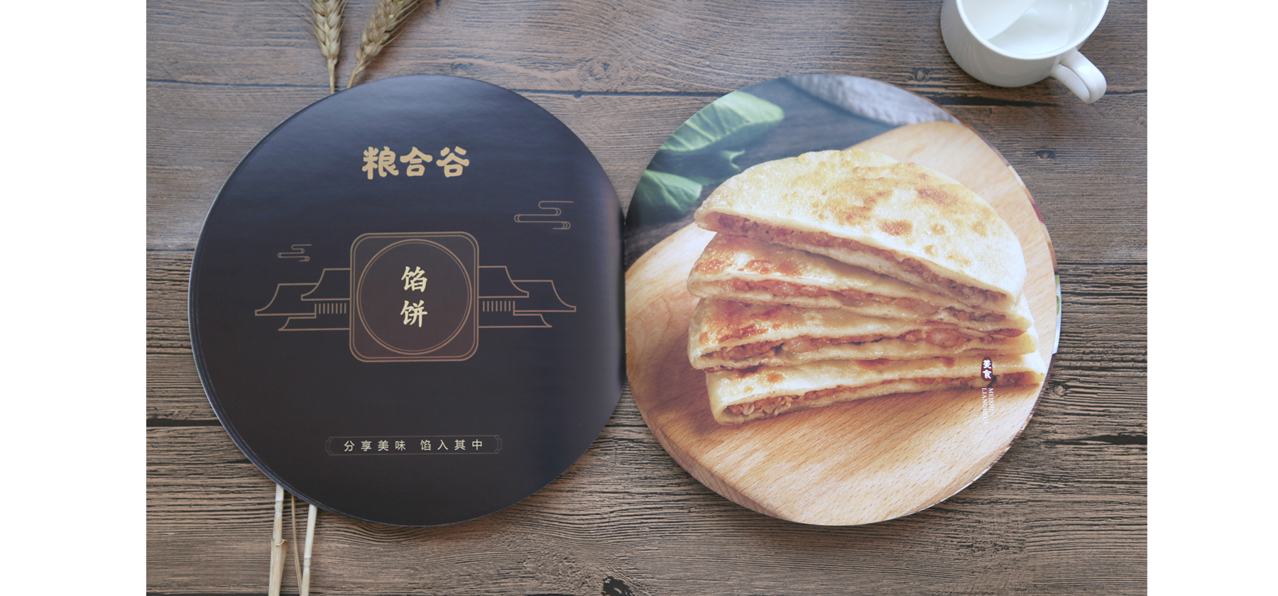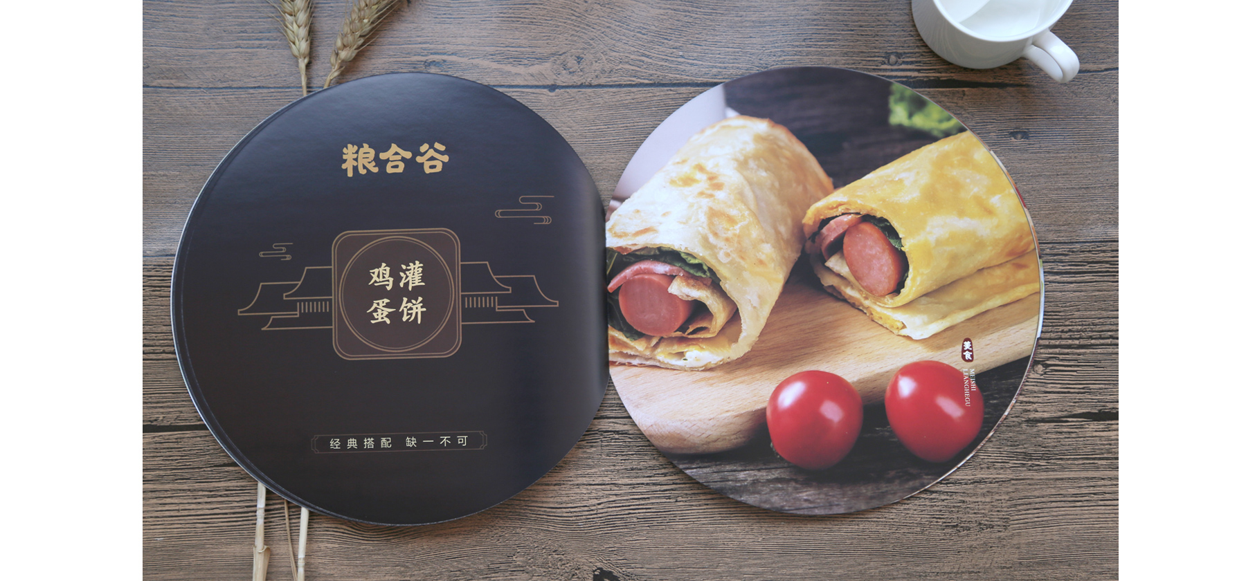 考慮到客戶(hù)的產(chǎn)品以手抓餅為主,封面采用的是一張手抓餅放在一個(gè)托盤(pán)上,拍攝封面的過(guò)程也是十分的曲折,因為角度是自上而下正對,需要攝影師趴在桌子上向下直著(zhù)拍。